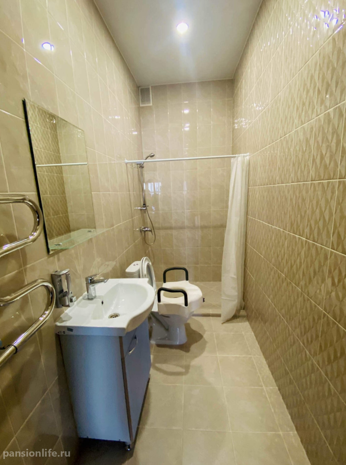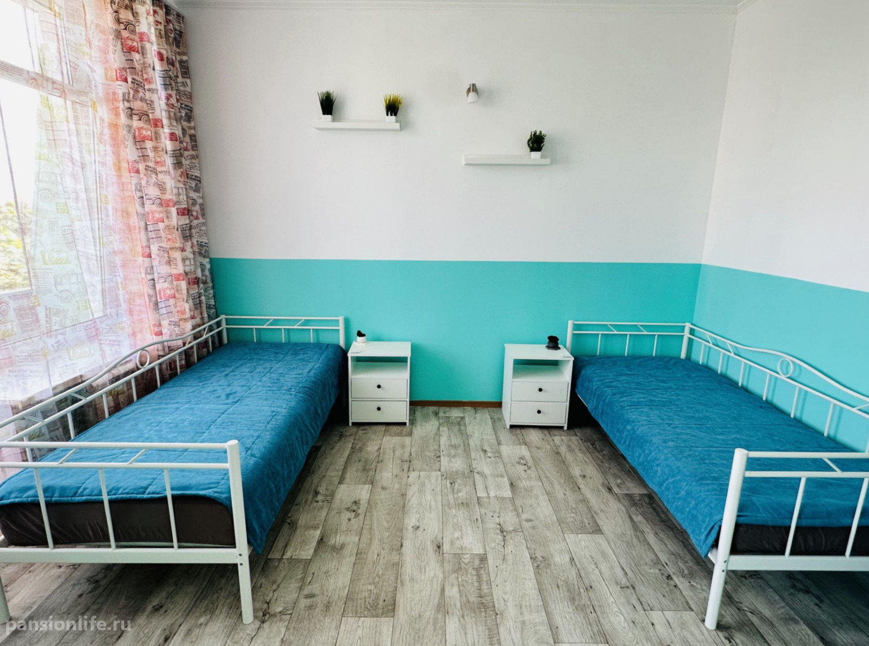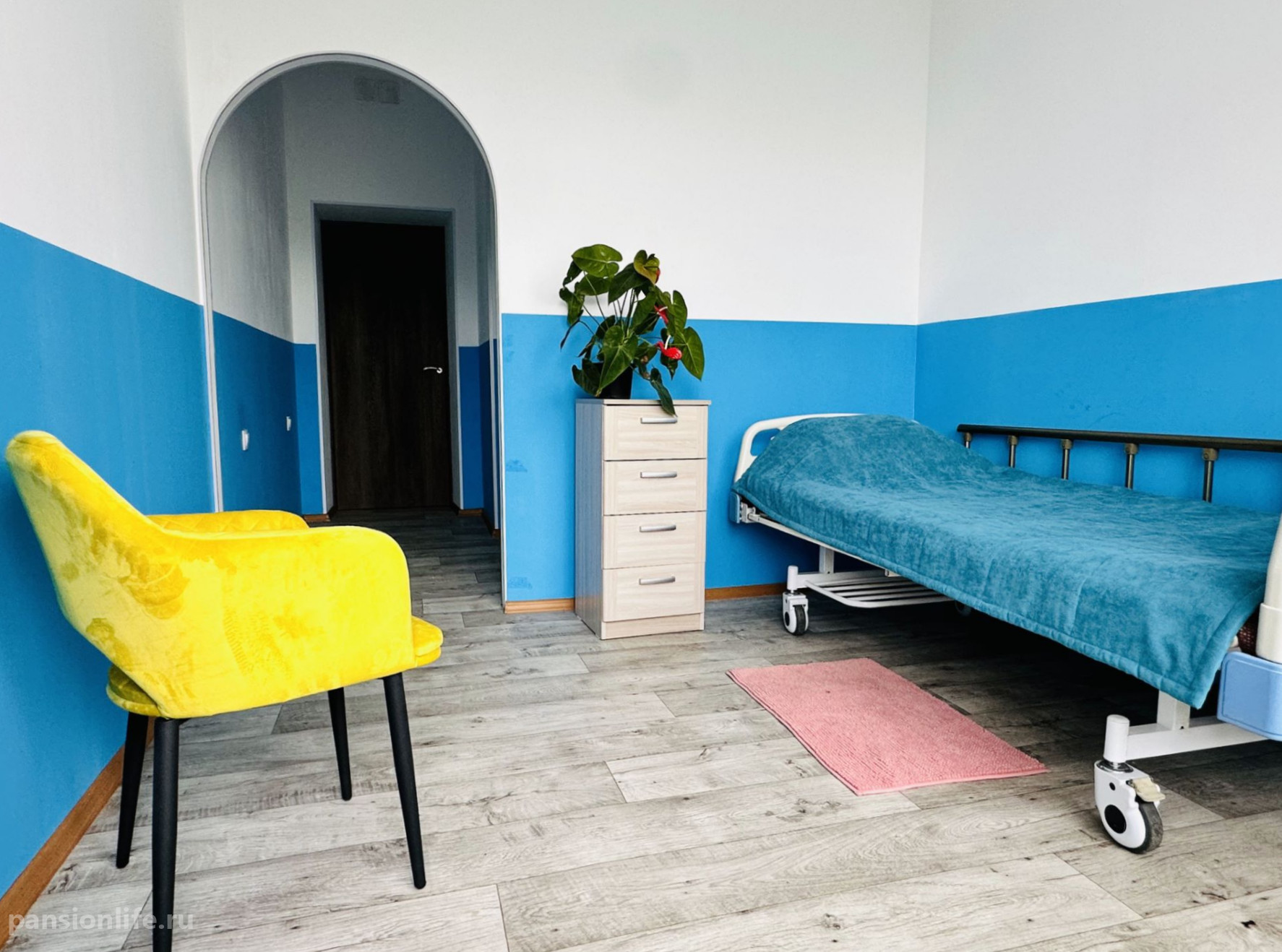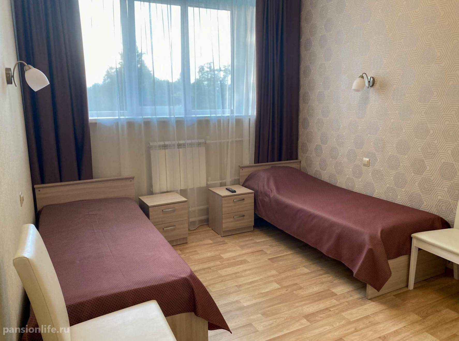 Квалифицированный персонал обеспечивает ежедневный уход, включая регулярные осмотры врачом-терапевтом, мониторинг здоровья и контроль приема медикаментов. Для размещения предназначены светлые номера на 1-4 человек. Безопасность и удобство гарантируют кнопки экстренного вызова и поручни по всему пансионату.