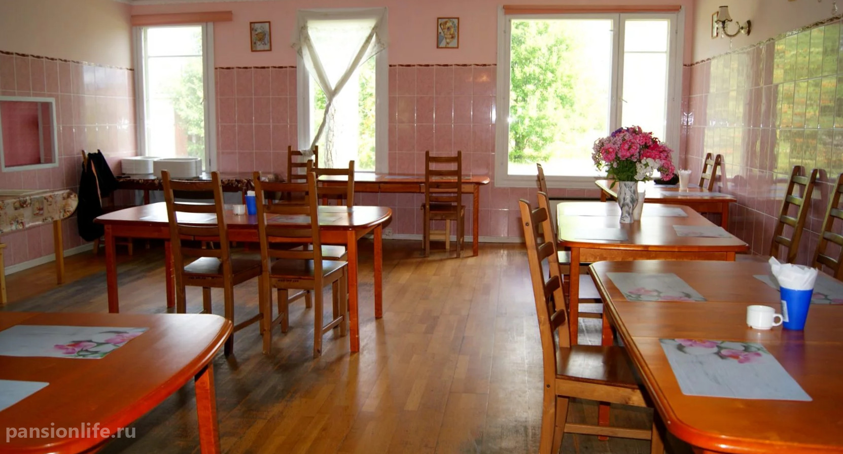 Проживание организовано в уютных комнатах, рассчитанных на 2-3 человека. В помещениях регулярно проводятся уборка, проветривание и санитарная обработка. Для отдыха и активности жильцов предназначена собственная благоустроенная территория.