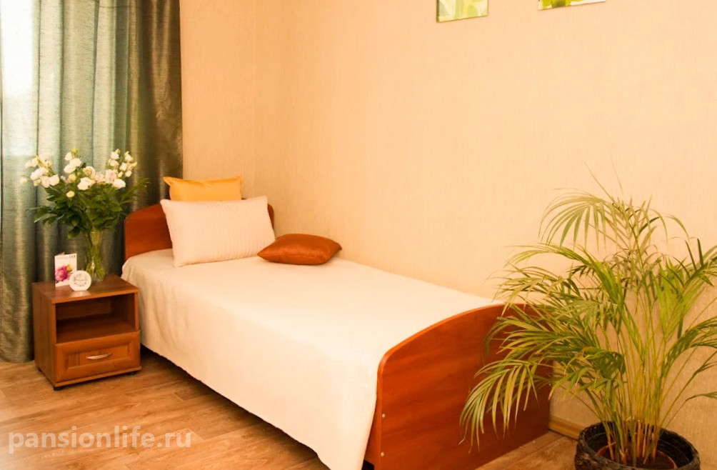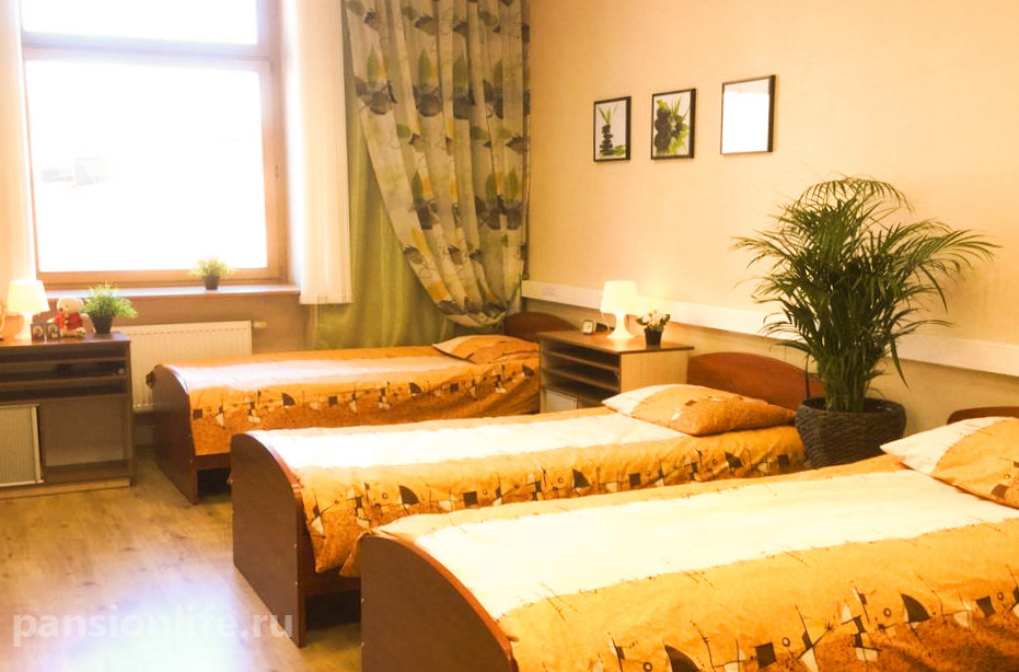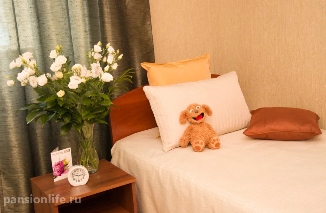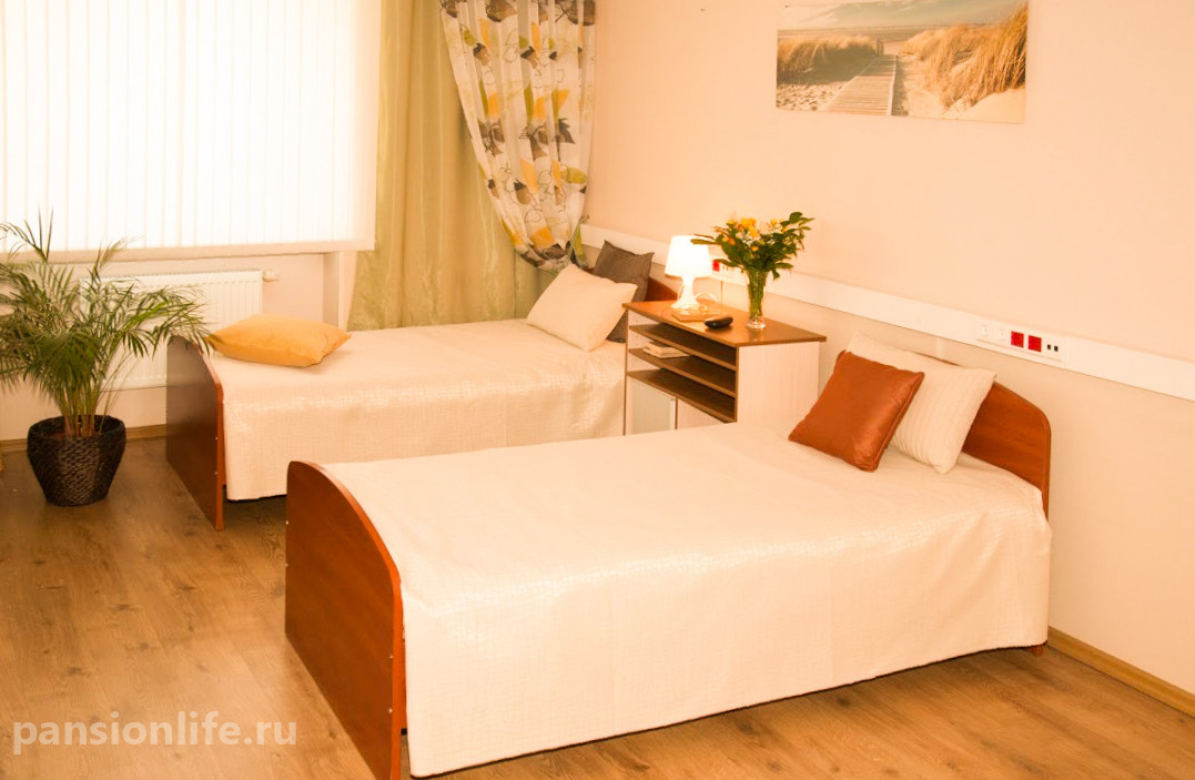 Просторные светлые комнаты на 2-4 человека, оснащенные всей необходимой мебелью. Для маломобильных постояльцев предусмотрены функциональные кровати, противопролежневые матрасы и прикроватные столики. Уют создается за счет внимания к деталям, включая декоративный текстиль.