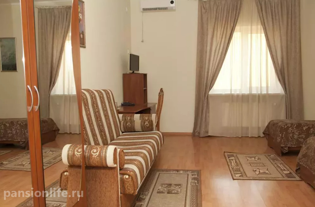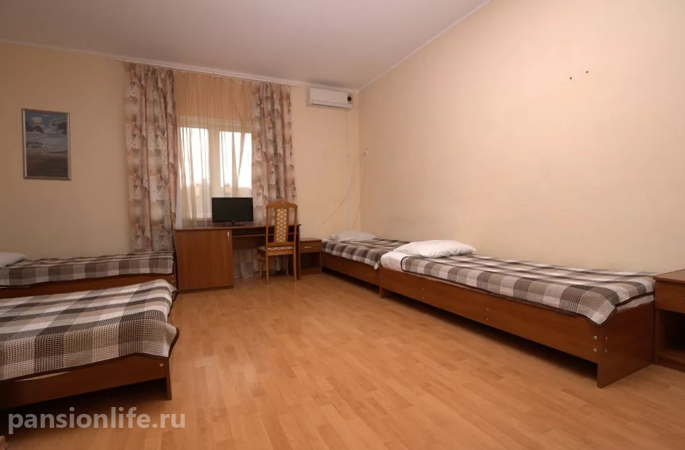 Проживание организовано в комфортабельных номерах, рассчитанных на 1-4 человек. Каждая комната оснащена современной мебелью, холодильником, телевизором и кондиционером. Чистота и порядок поддерживаются благодаря регулярной уборке и смене постельного белья. Для лежачих постояльцев созданы специальные условия.